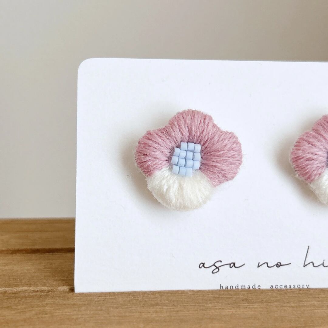 <新作>hana shizuku|手刺繍の心をふわりほどく耳かざり|pink