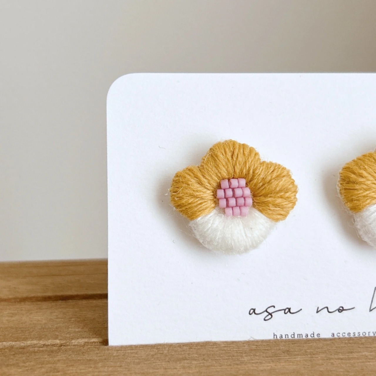 <新作>hana shizuku|手刺繍の心をふわりほどく耳かざり|yellow
