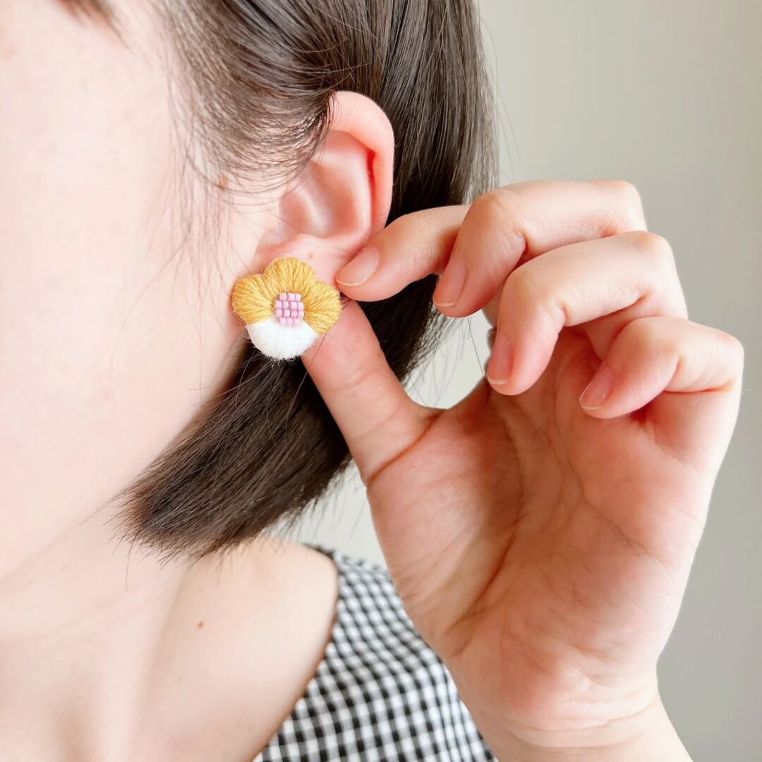 <新作>hana shizuku|手刺繍の心をふわりほどく耳かざり|blue