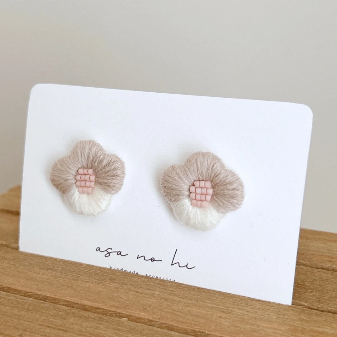 <新作>hana shizuku|手刺繍の心をふわりほどく耳かざり|beige