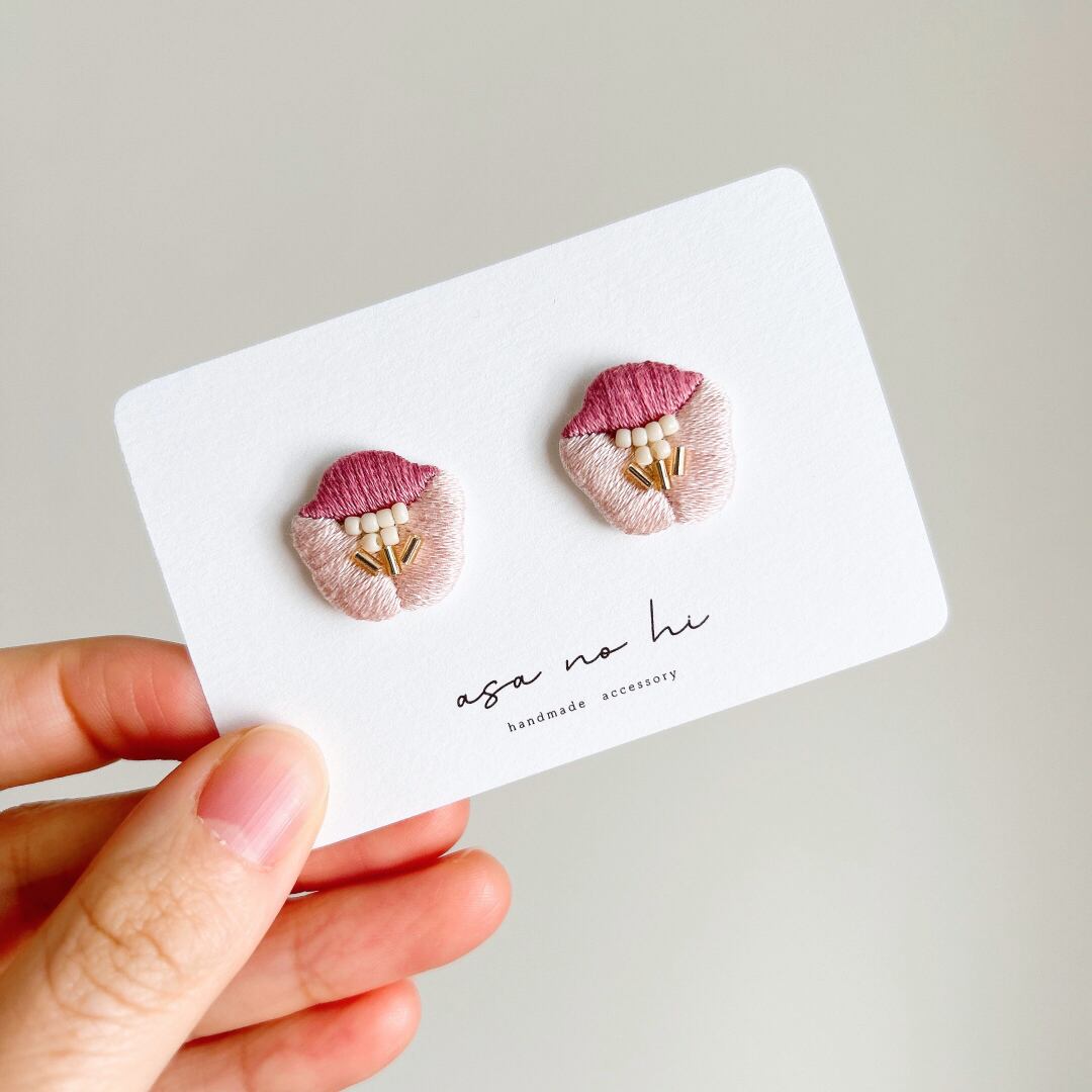 <再販>saku|手刺繍の花束のような耳かざり|pink