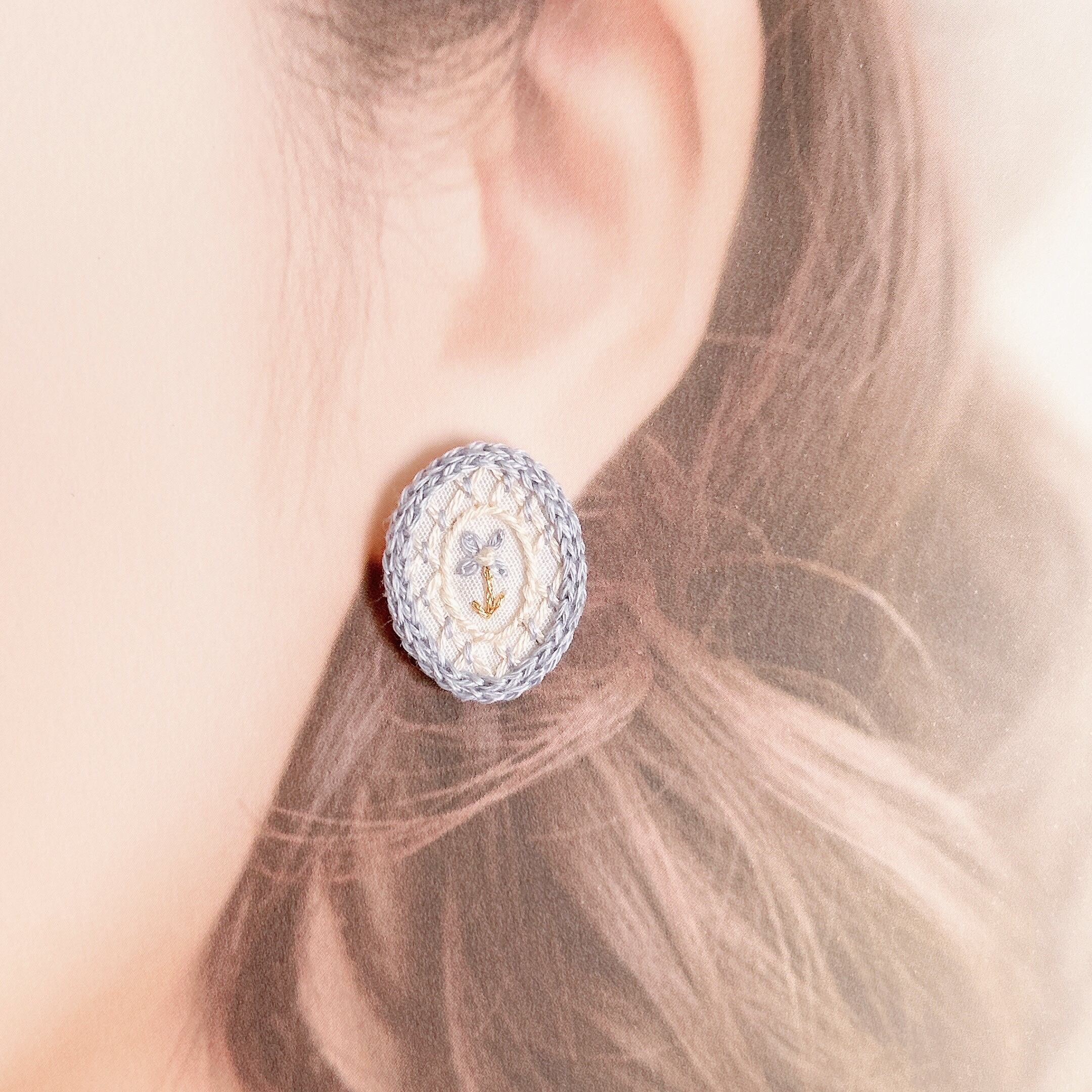 <新作>utsuroi|手刺繍の変わる心に寄り添う耳かざり|丸フレーム|blue