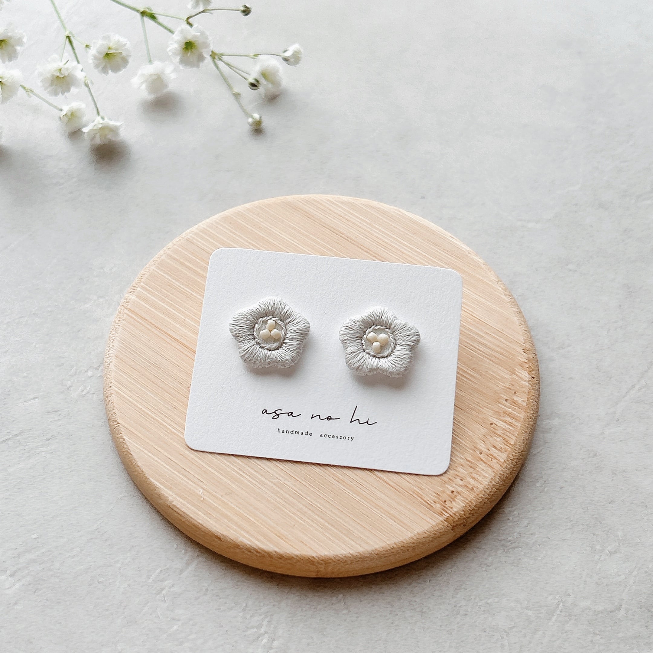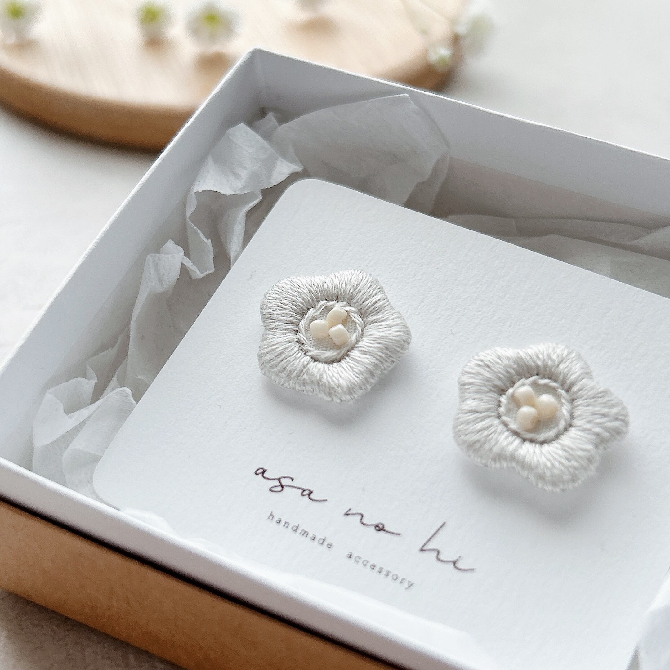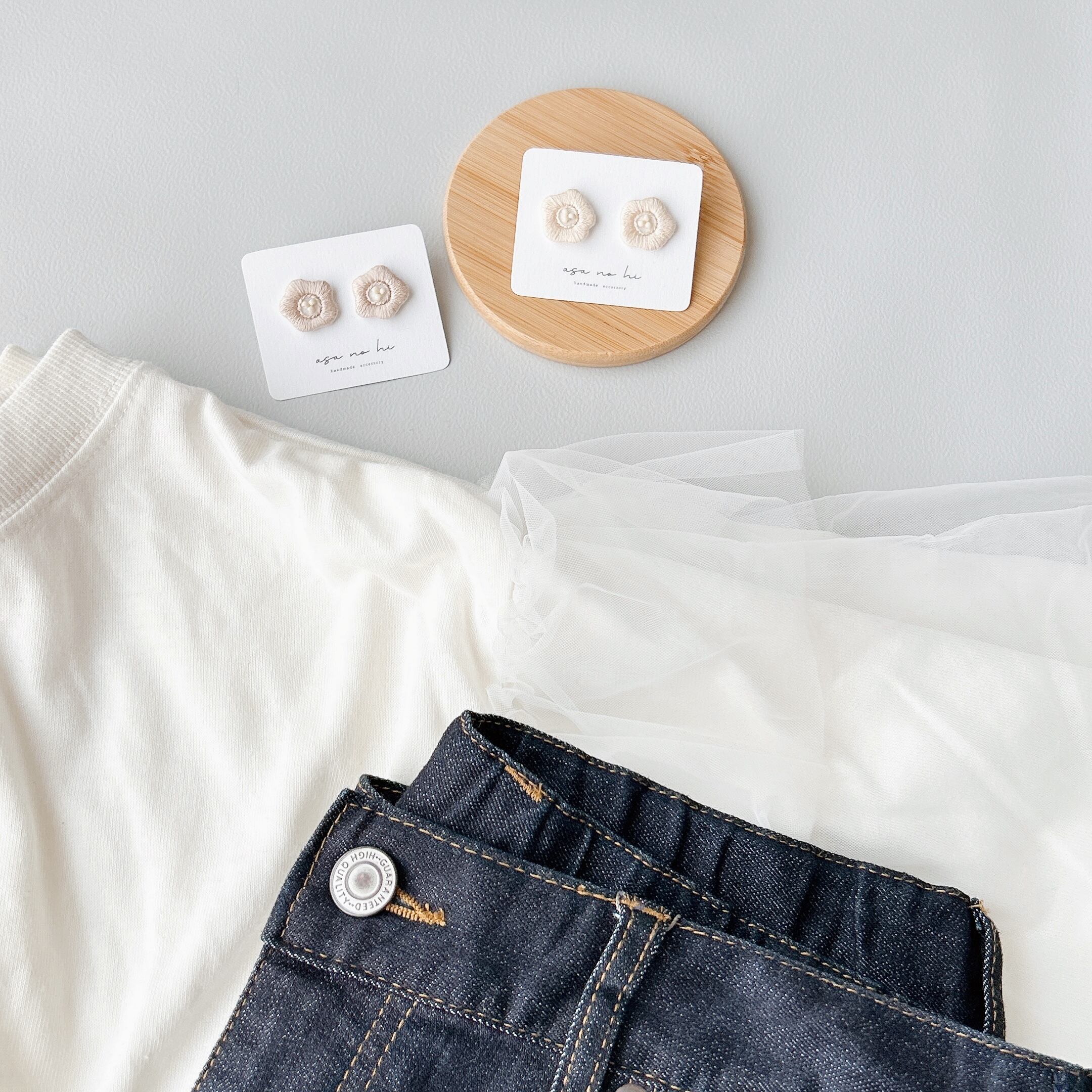 ・手刺繍の陽だまりのような耳飾り