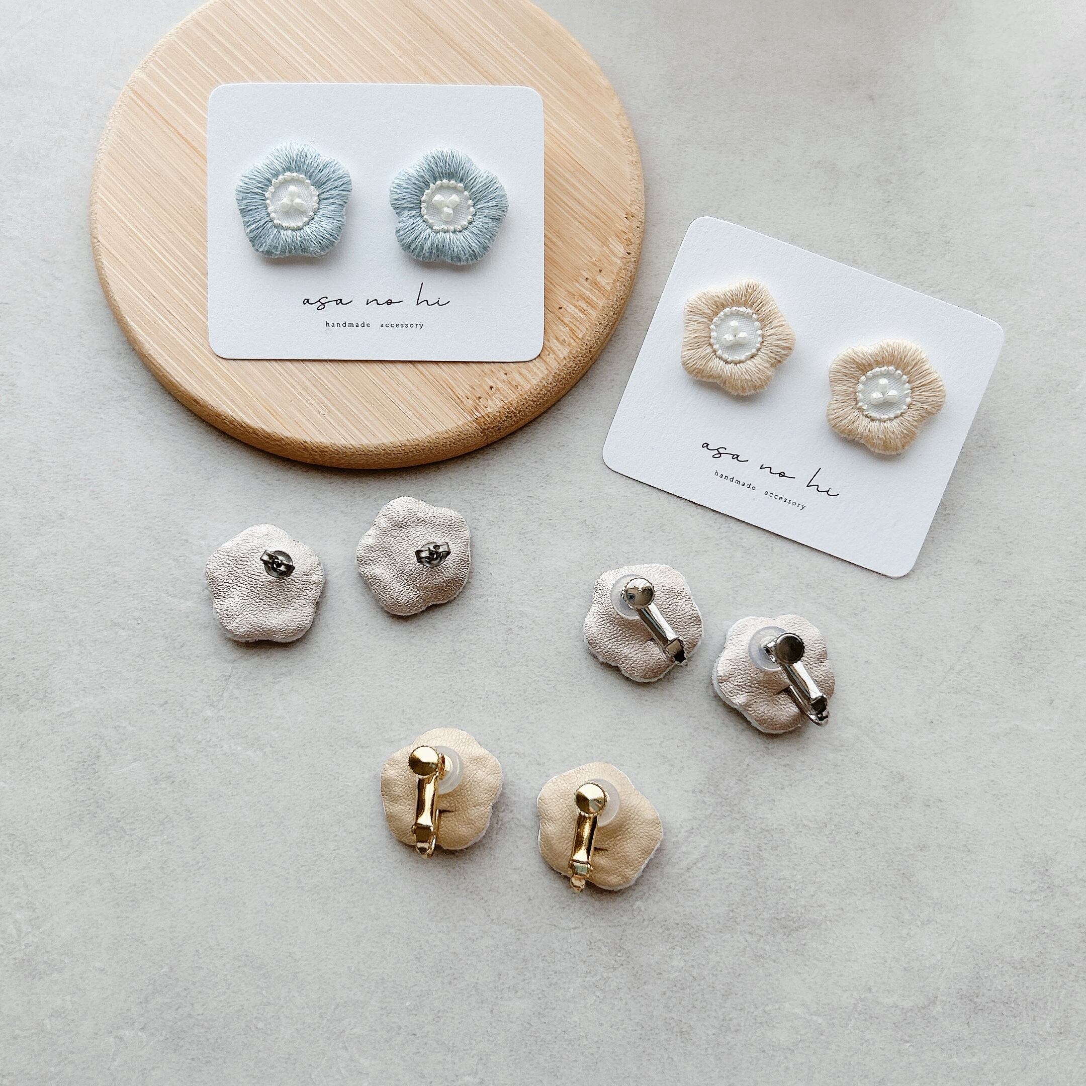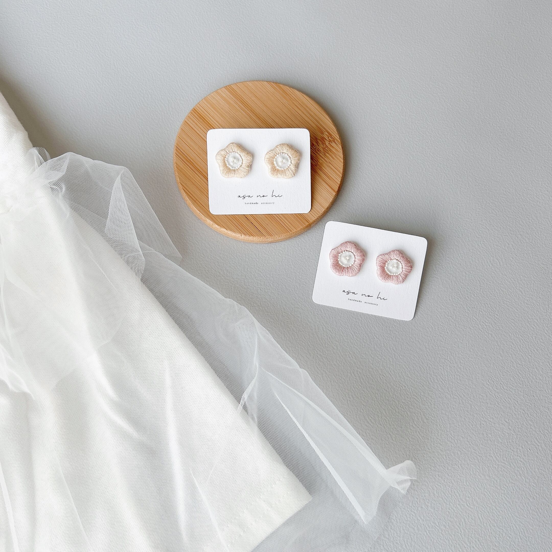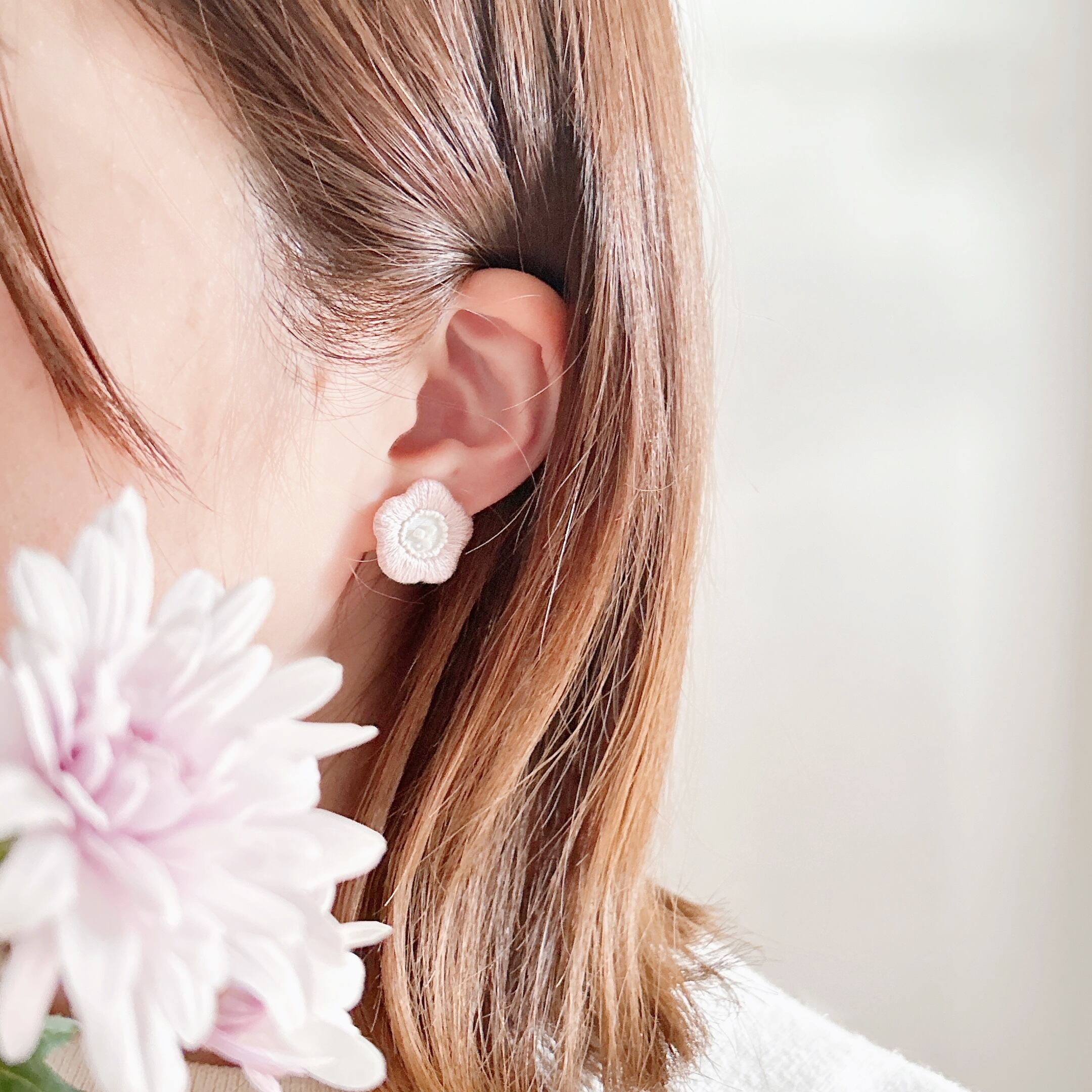 ・手刺繍の陽だまりのような耳飾り