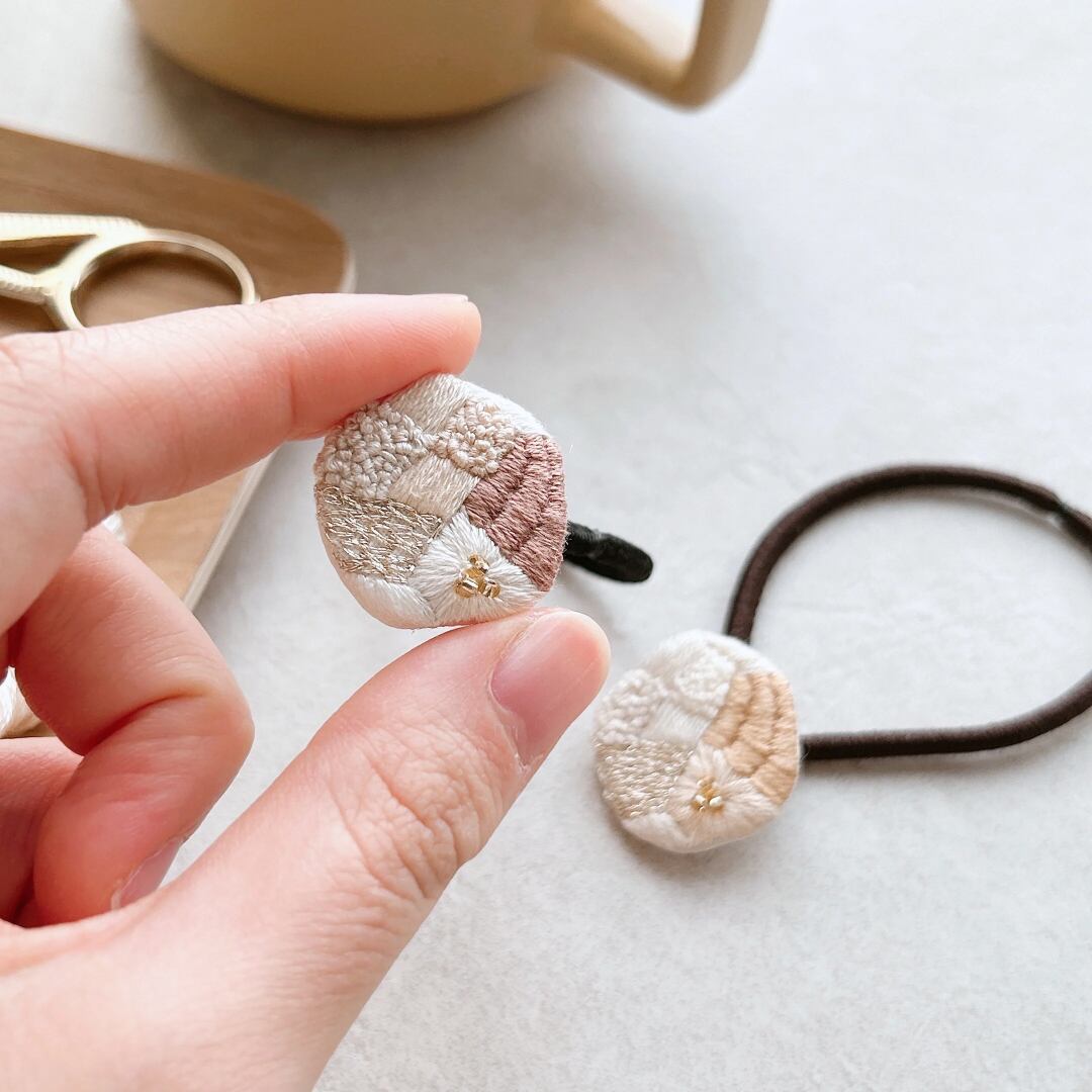 ・手刺繍2way:ヘアゴム/ブローチ