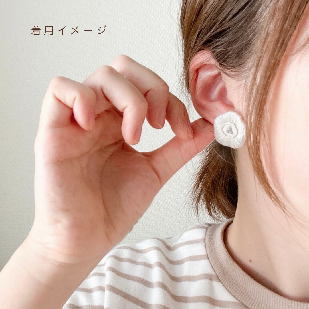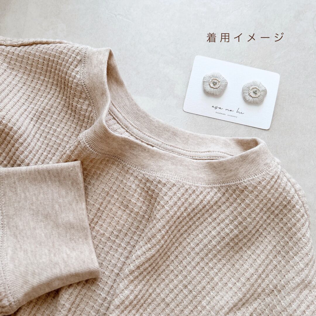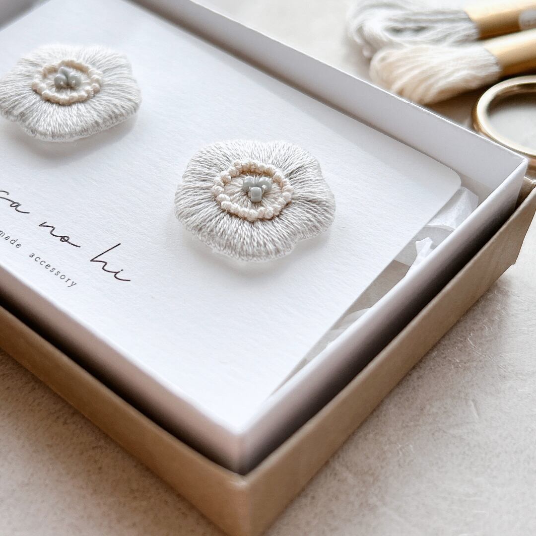 <定番>nico nico|手刺繍のやさしい耳飾り|安らぎのグレー