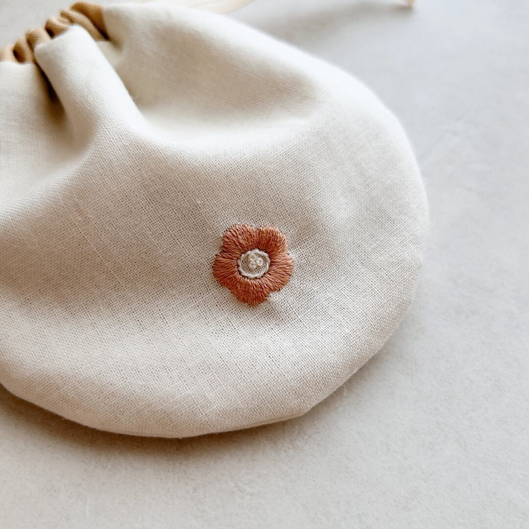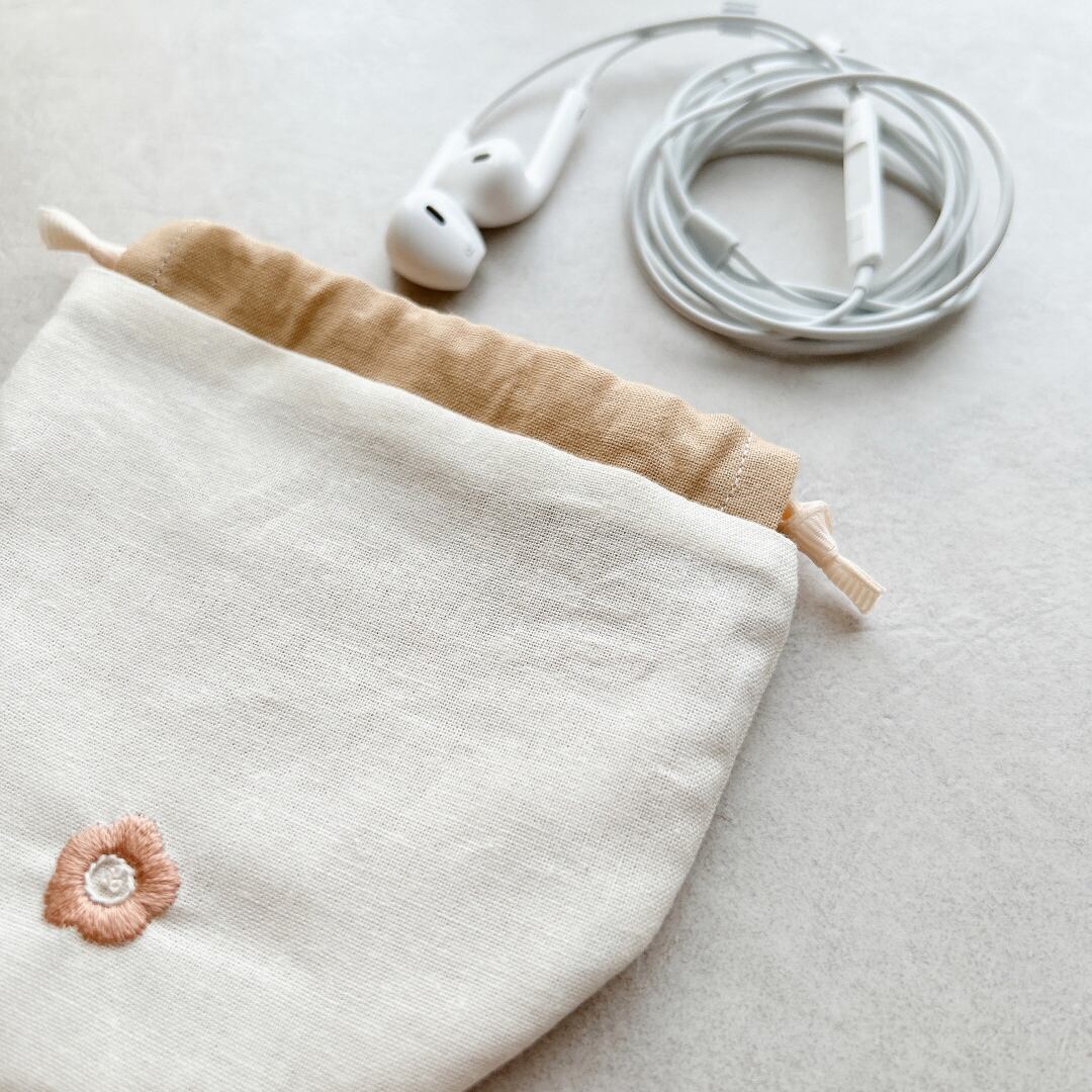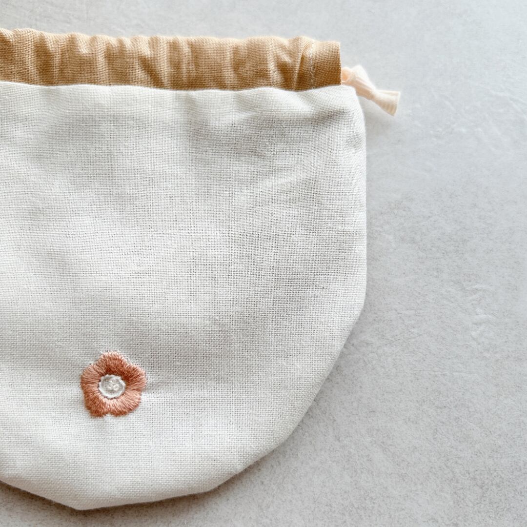 ・手刺繍の優しいまんまる巾着