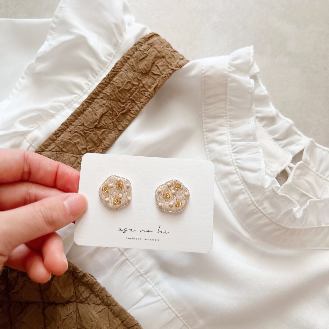 <オンライン限定>kira kira|手刺繍の輝く耳飾り|beige