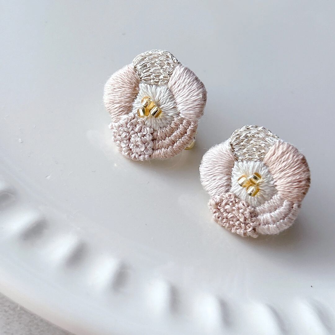 <new>waku waku|手刺繍のたのしい耳飾り|beige