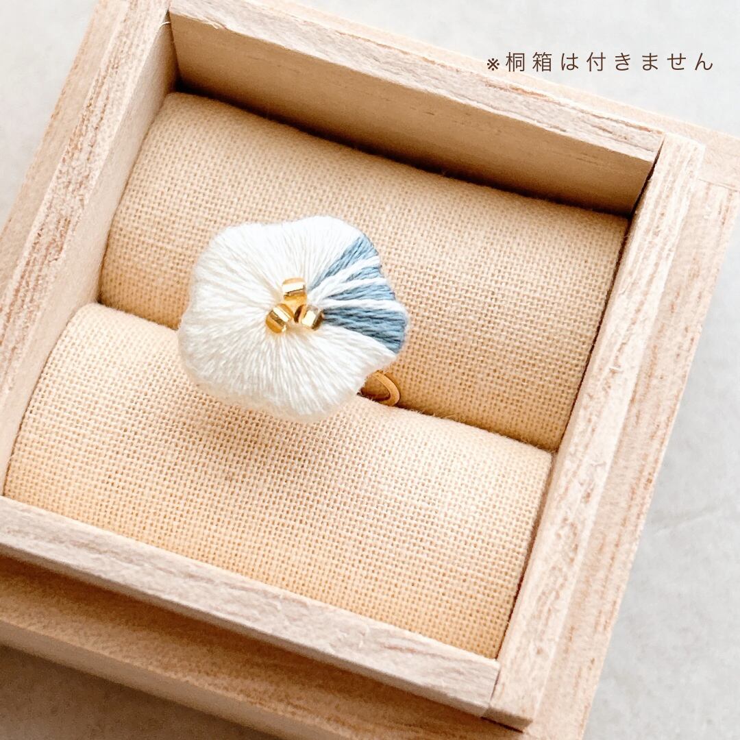 <新作>doki doki|手刺繍のコロンと小さなピンキーリング|くすみブルー