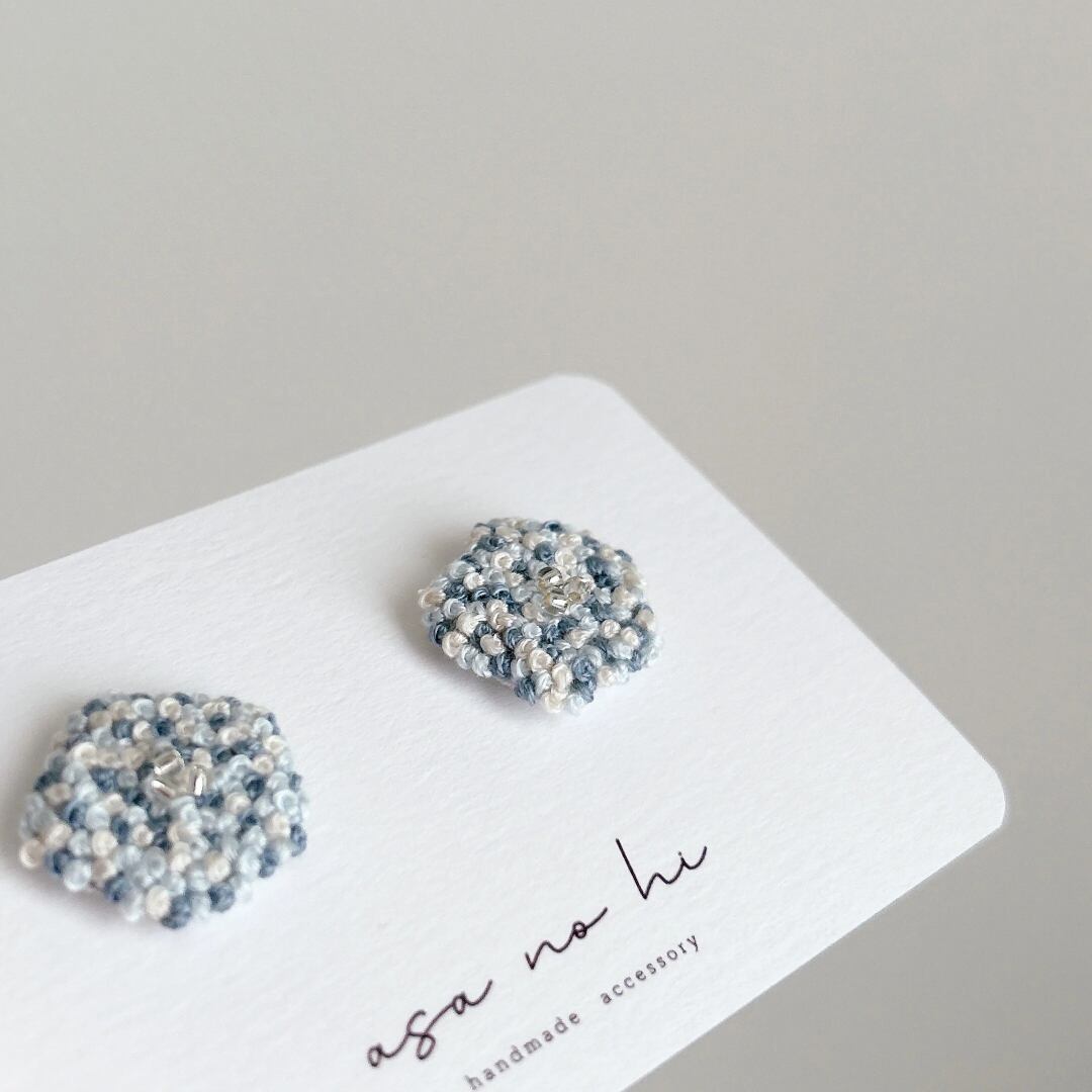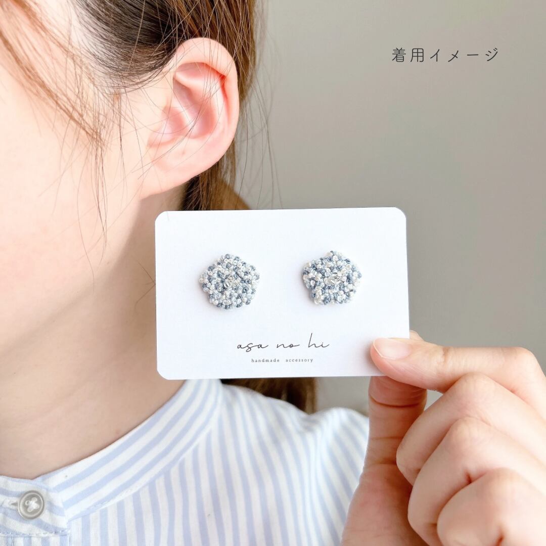 <人気再販>あじさい|憂鬱な梅雨を楽しむ|手刺繍の小つぶなつぶつぶ耳かざり|あお