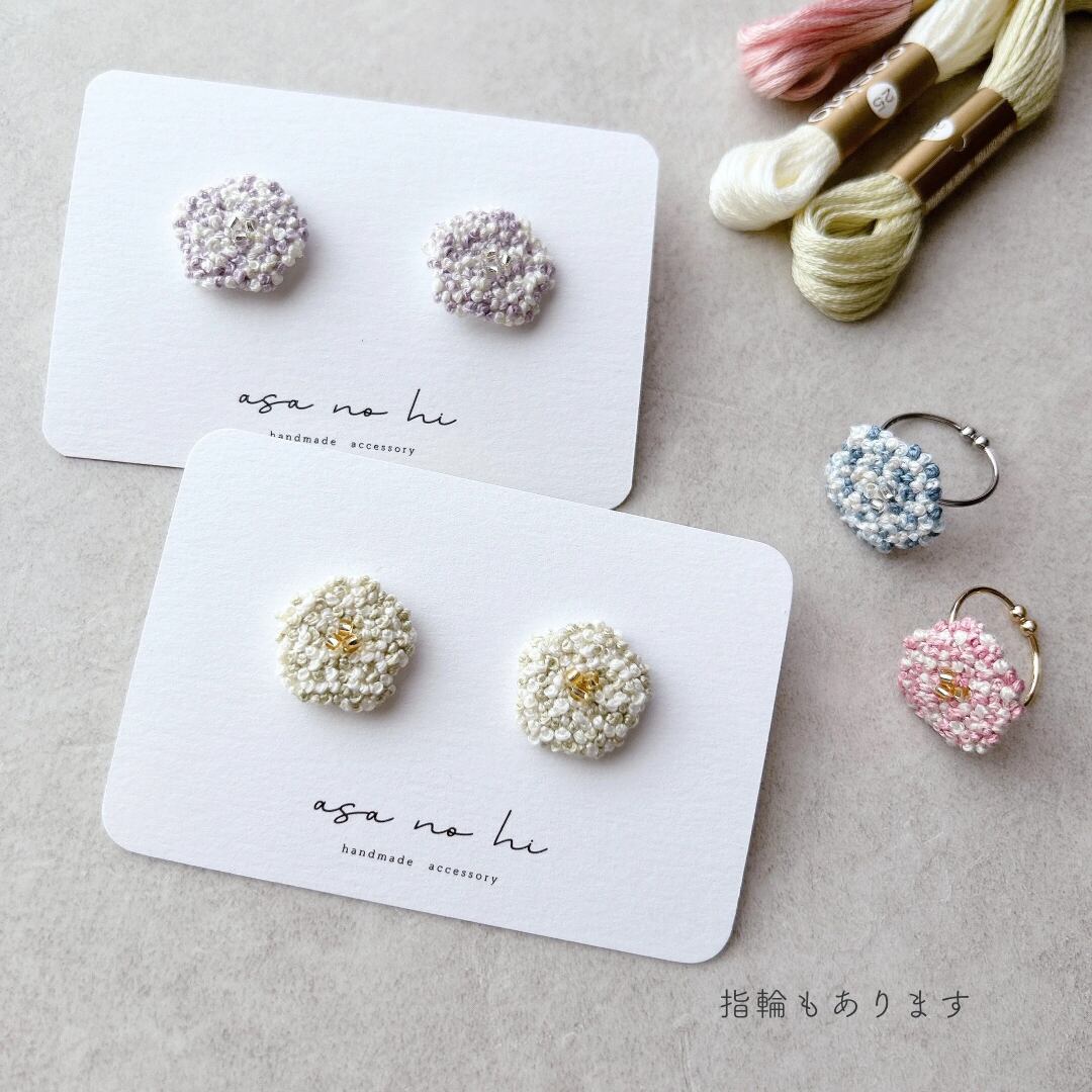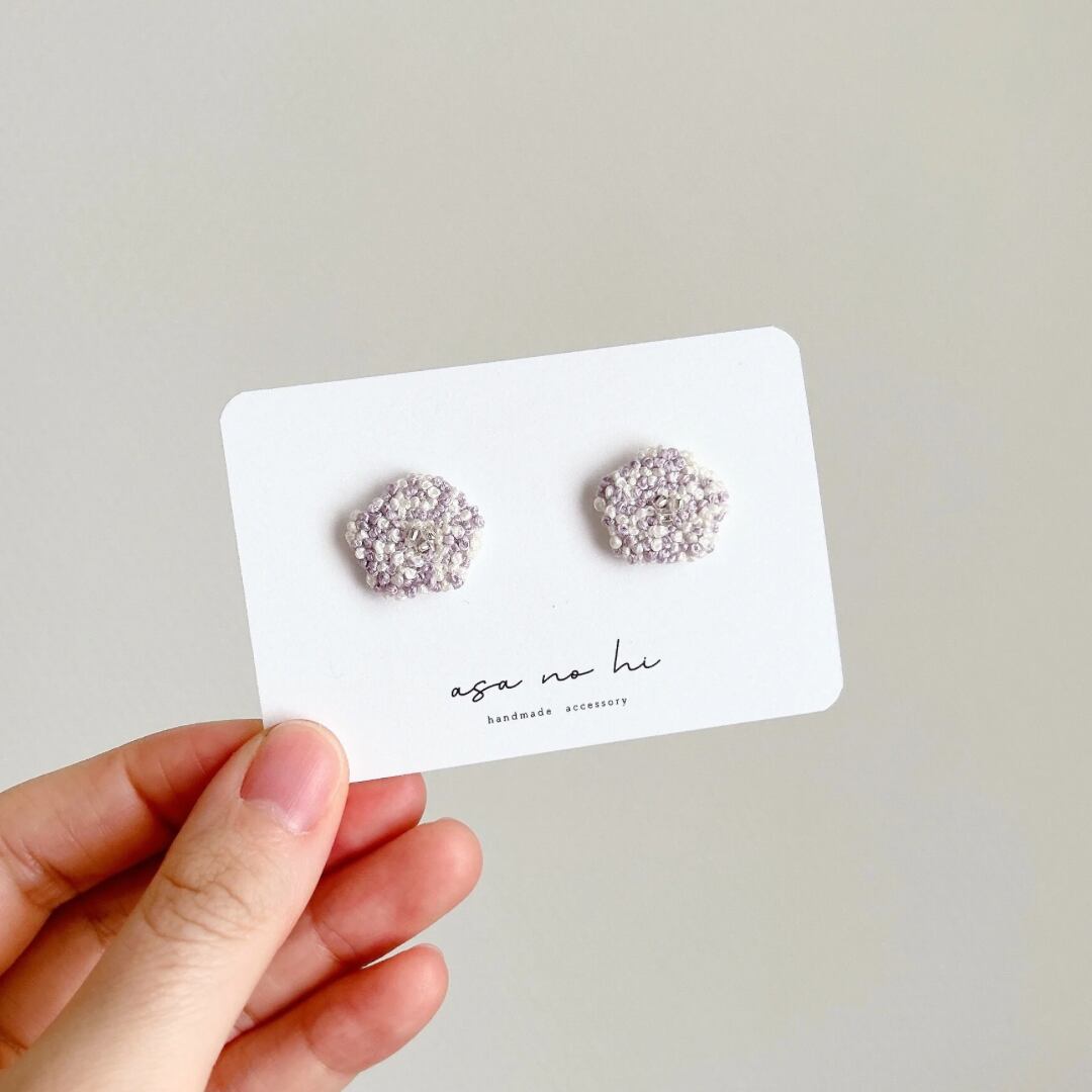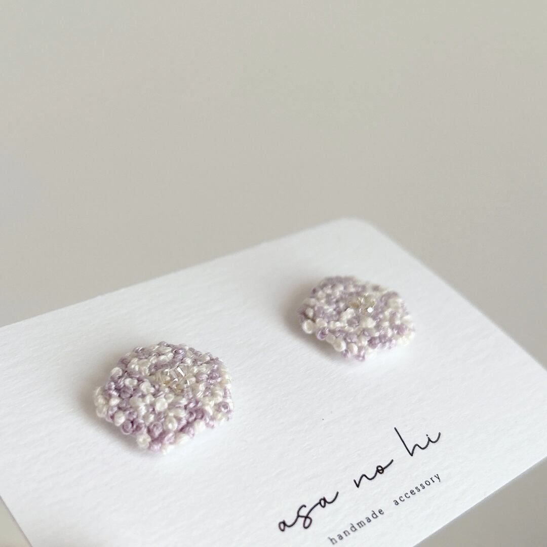 <人気再販>あじさい|憂鬱な梅雨を楽しむ|手刺繍の小つぶなつぶつぶ耳かざり|むらさき