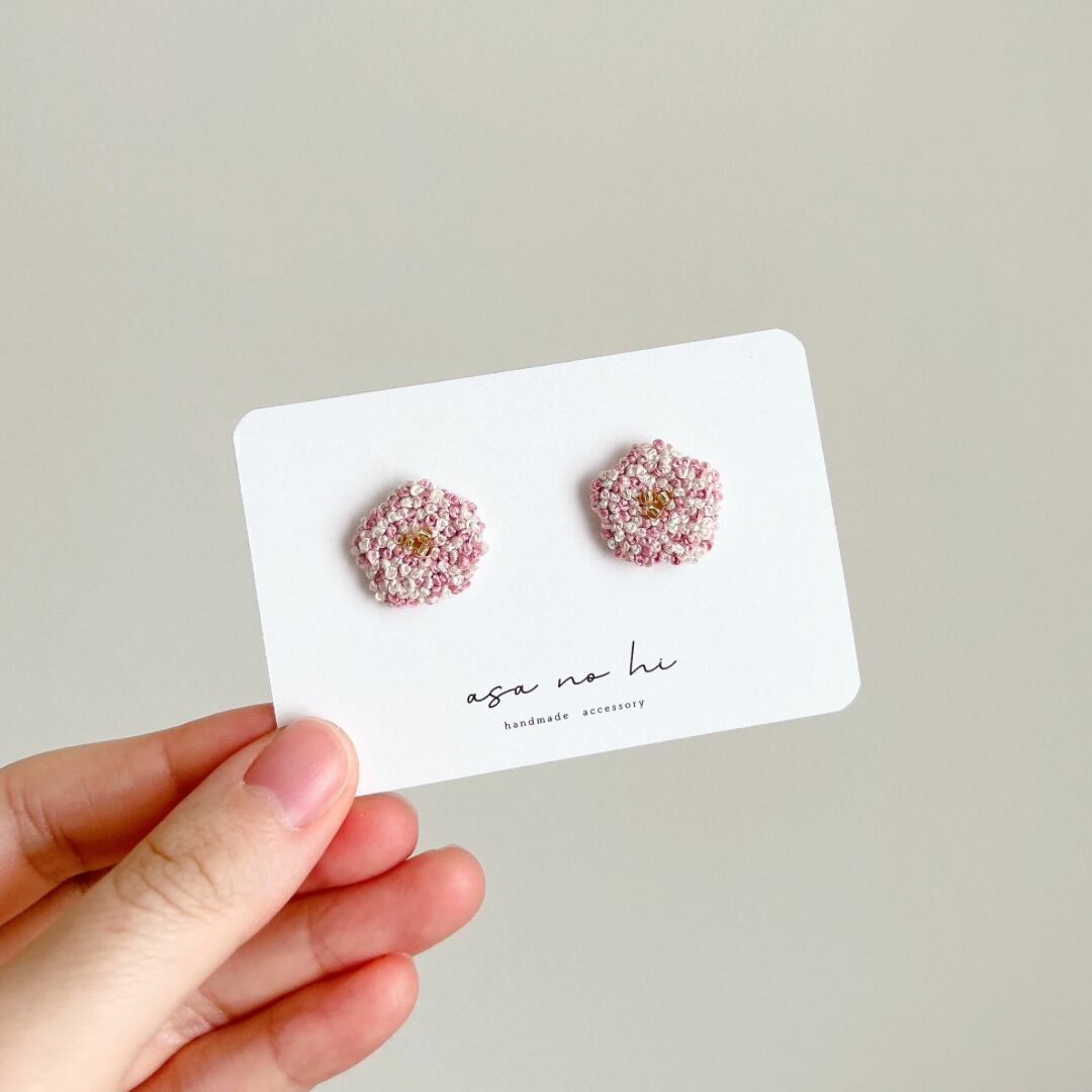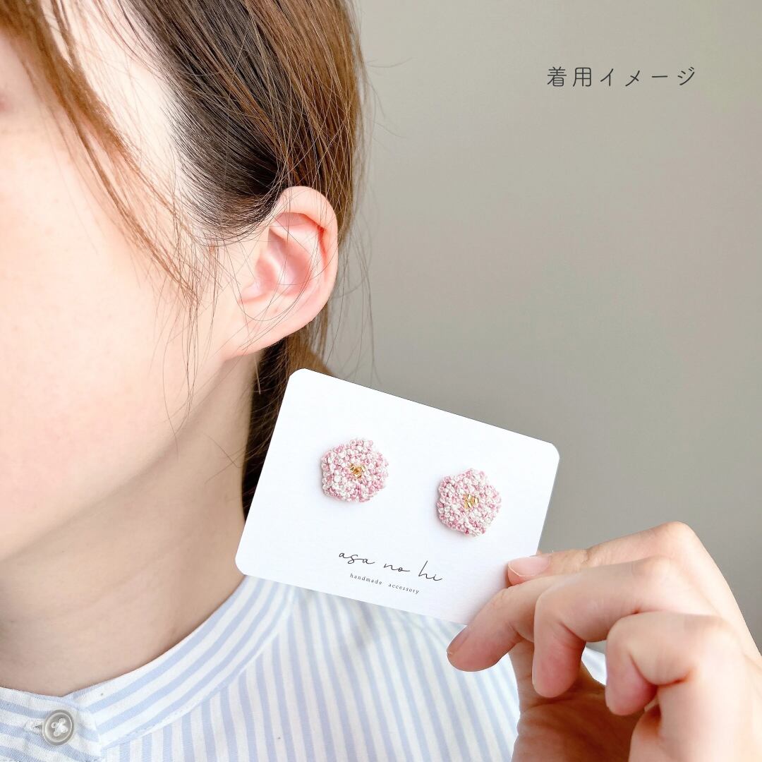 <人気再販>あじさい|憂鬱な梅雨を楽しむ|手刺繍の小つぶなつぶつぶ耳かざり|ぴんく