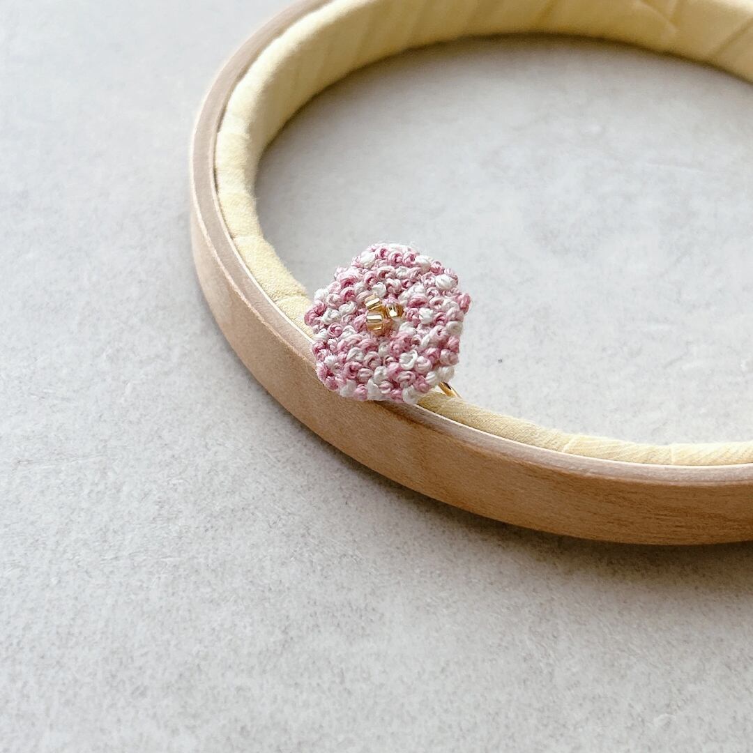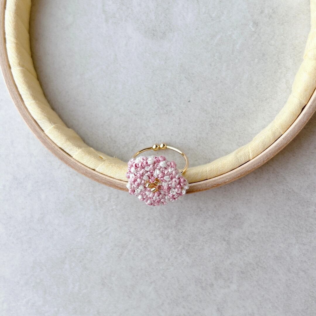 <季節限定>あじさい|憂鬱な梅雨を楽しむ|手刺繍の小つぶなつぶつぶ指輪|ぴんく